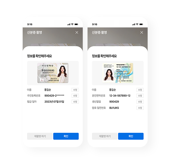 API 통신으로 인입된 신분증 이미지의 OCR 결과값