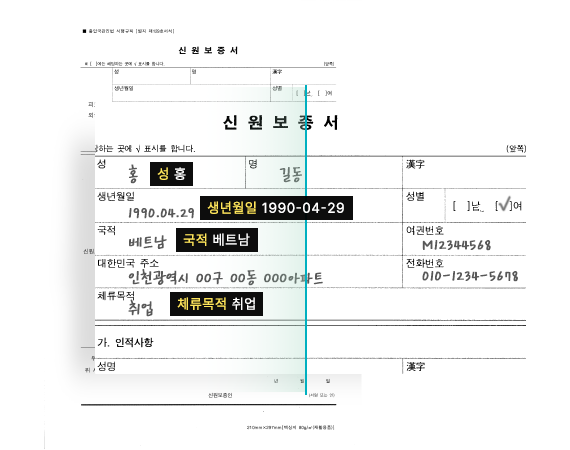 API 통신으로 인입된 신분증 이미지의 OCR 결과값
